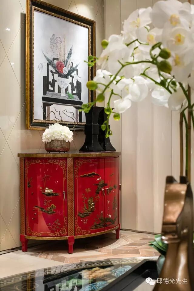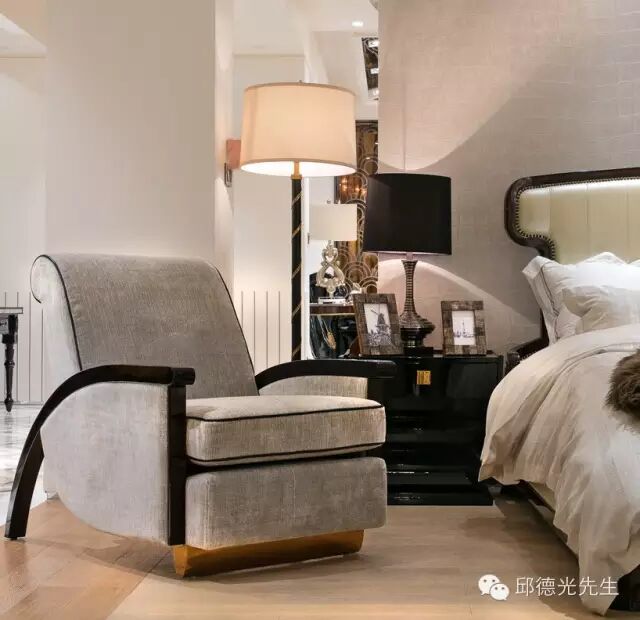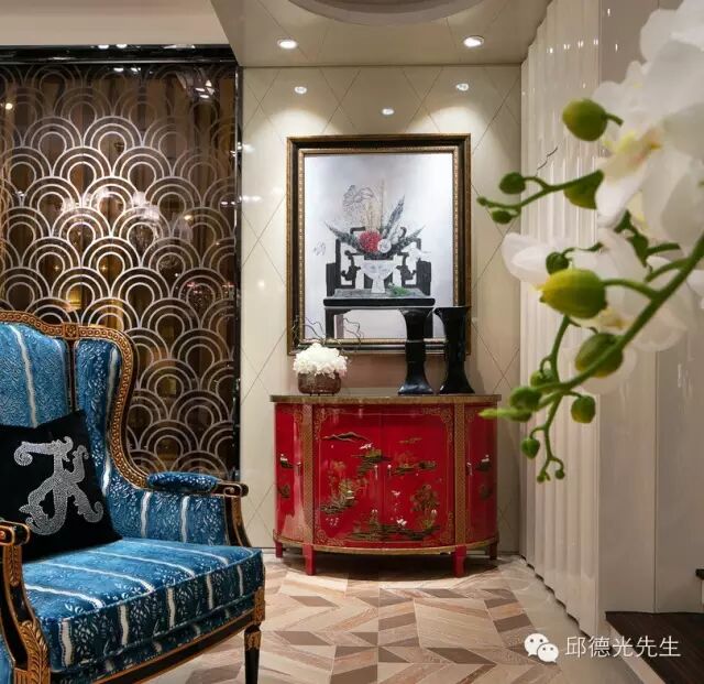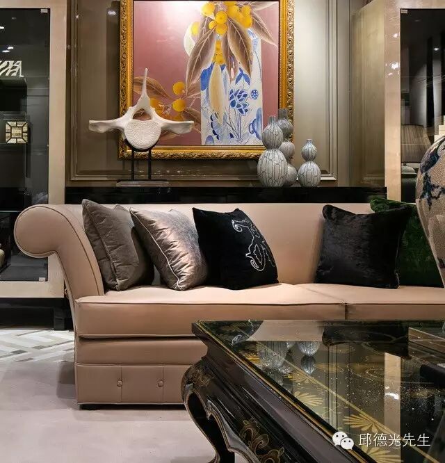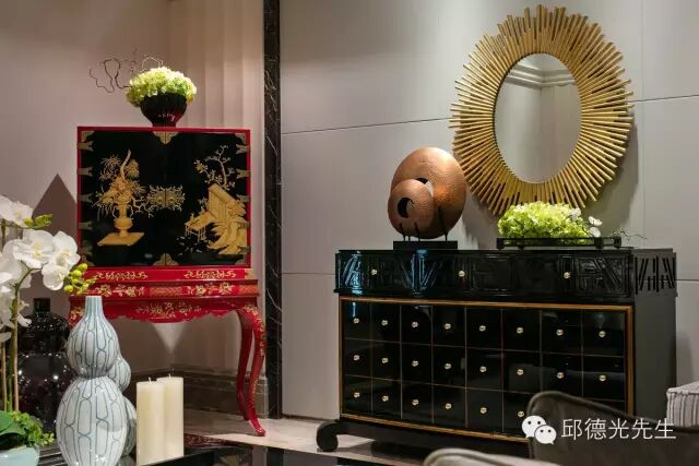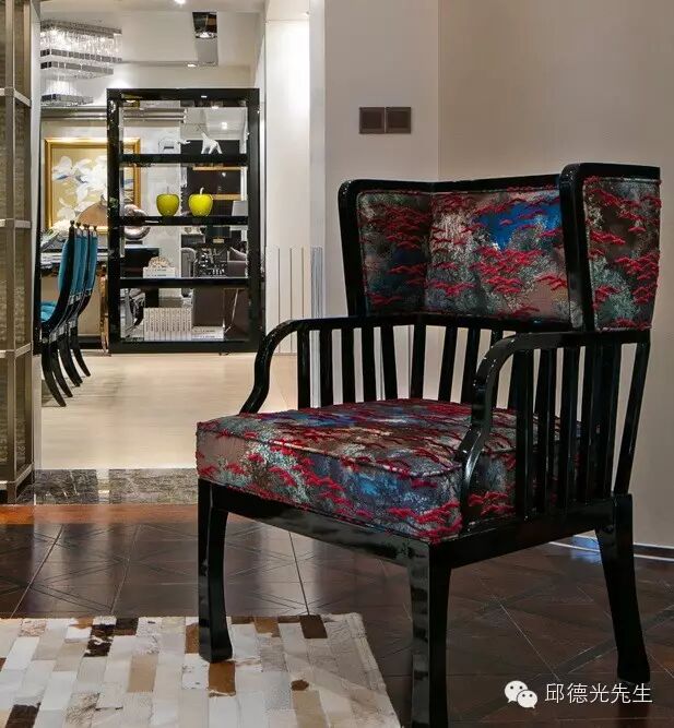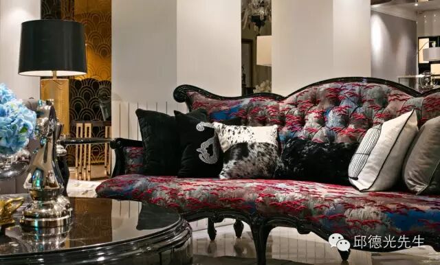 邱氏的家具以西方古典外型为轮廓,东方生活美学为细末,透过色彩和织料的调和淡化历史厚度,开展出既融合东西又独具华夏情韵的个性。