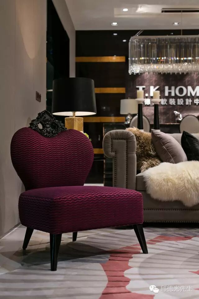以新的织料为这张曲线娇媚的座椅裁制新衣,并采用年度流行主色的酒红面料,更能突显邱德光对时尚趋势的探索。