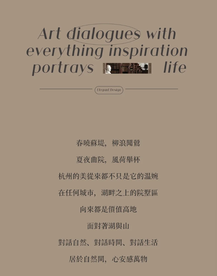 在杭州这座蕴藏着千年文脉与现代气息交融的城市中,湖不仅是一种自然景观,更是一种生活方式的象征。以“缔造独属于杭州的当代湖居生活”为内核,将法式古典庄园的优雅与海派度假风情的浪漫共冶一炉,重新诠释何谓“湖居”。这不仅是一次空间设计,更是一场关于艺术、文化与生活的深度对话,一次跨越时空的情感共鸣。