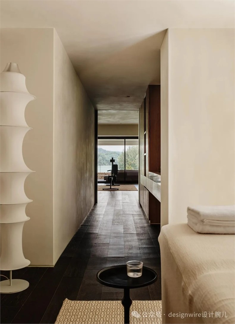 生活动线分为双轴:社交主轴——车行入口、景观连廊、挑空会客厅、无界泳池,再至湖光山色,形成具有仪式感的行进节奏;私密次轴——家政间、后勤楼梯、专业厨房、SPA区,打造“隐形服务体系”,兼顾隐私与效率。