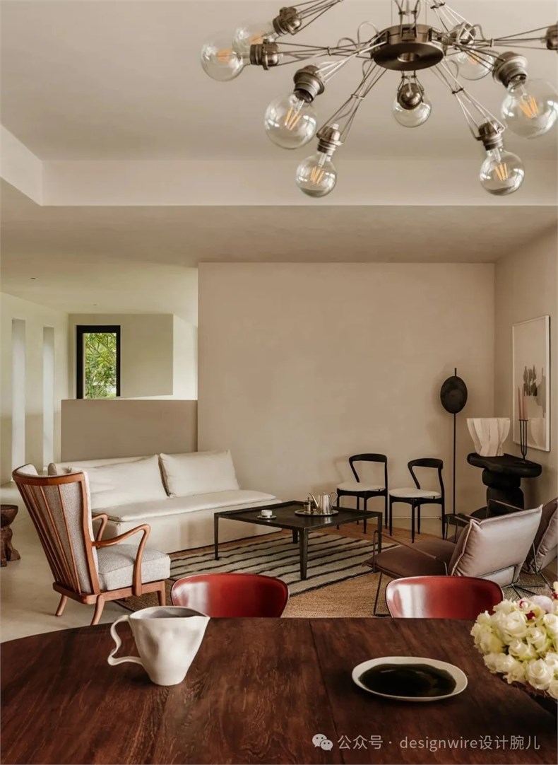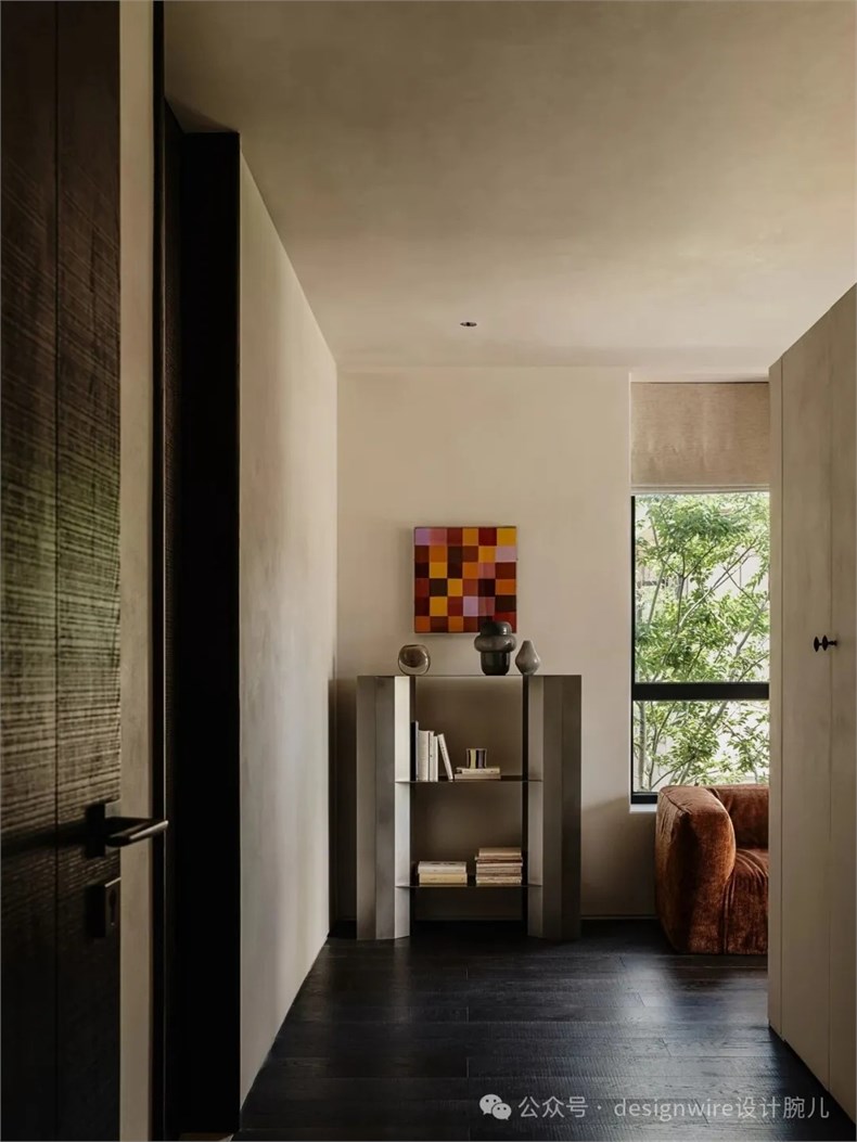 低饱和度的渲染,延续至生活的空间。起居厅的设计注重空间的舒适性、艺术性和功能性,通过简约的线条、自然的材质和精心的装饰,打造出一个高品质的生活空间。