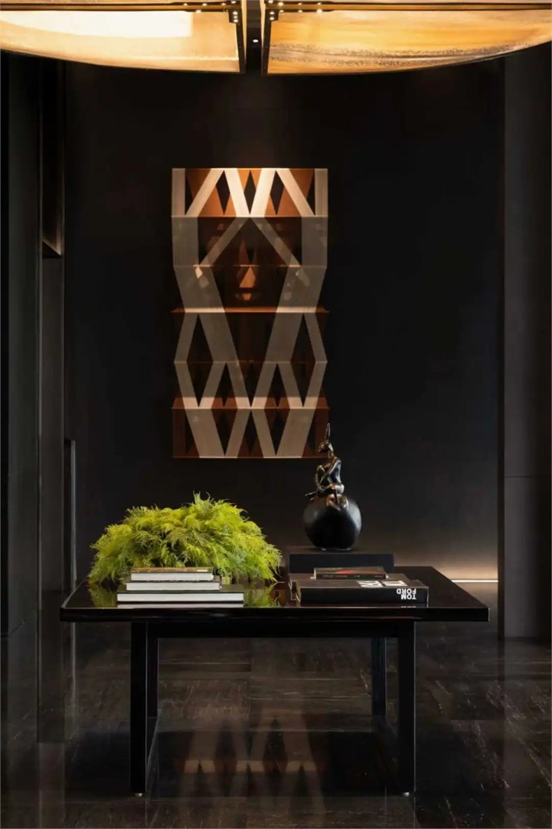 灯光作为情绪的催化剂,在空间中的运用至关重要。为了营造出奢雅酒店的静谧格调,地下会所采用隐奢式无主灯设计,将小格栅灯具巧妙隐藏于天花板,以点状布局精准点亮不同区域。