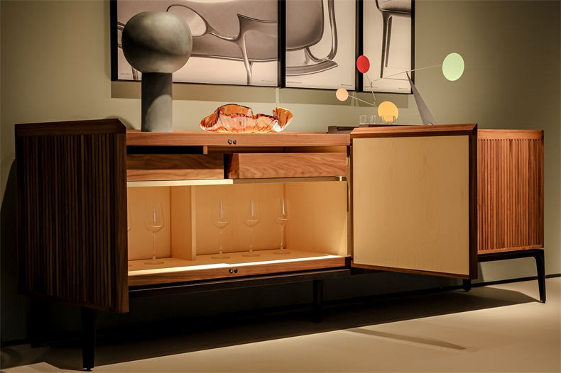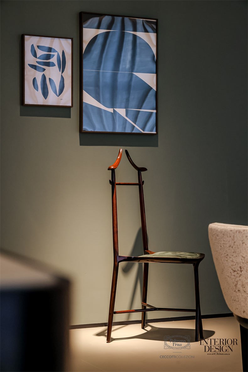 沿阶而上,二层设有 Ceccotti Collezioni 独立展区,通过经典与当代作品的对话,呈现两大品牌共融的意式生活美学。这个源自托斯卡纳的木艺品牌以温润线条与雕塑感造型著称,在这里以木艺之美勾勒出克制而优雅的空间气质。整座空间从材质到光影的层层递进,构筑出一段可感知的意式居住体验。