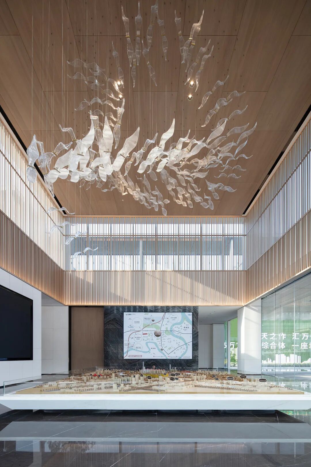 这是一个城市展览馆,也是一个承载着交流与互动的活动中心。设计承袭“光之森林”的建筑理念延伸至室内空间的呈现,以光为媒,营造一个充满艺术于活力的森林。