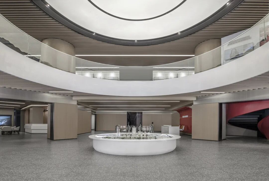 于空间创造艺术,将对空间所期待的情感,转译为可感知的符号,以城市展厅的涵义,运用流动和坚挺的形态渲染,极简艺术贯穿始终,营造理性与感性交织的美学空间。