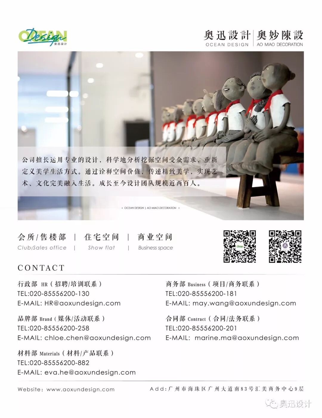 广州奥迅室内设计有限公司成立于2013年,是一家拥有近200人的专业室内设计顾问公司。公司提供专业的室内设计服务,业务涵盖了概念设计、方案深化设计、施工图设计、现场技术配合、后期软装陈设等全面服务。我们的专业设计团队分为 6个独立设计组,另配备专业的效果图制作部门、设计研发部门、材料管理部门及后期软装陈设部门等,团队核心成员均曾服务于国内外知名设计集团。
