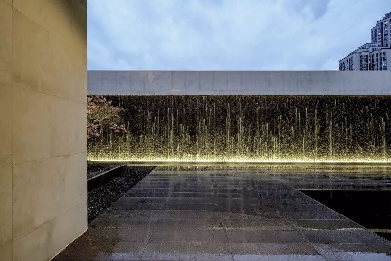 涌泉的跃动延续着舞曲,将前奏奏响。连廊演绎精巧小景,符合国人强调的影墙真髓,将人们引入若隐若现的高潮……