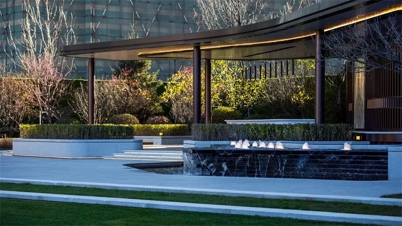 景观会客厅给社区活动提供各种可能性,水景、植物、廊下空间生动有趣,激发人们对生活的憧憬。