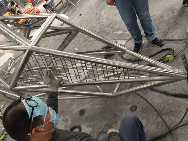 ▲雕塑制作过程中,工作人员对材料的密度做了多轮尝试。