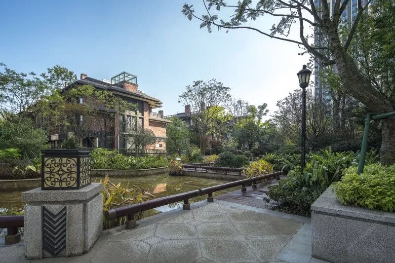 别墅区重在林与墅的和谐统一,营造私密、安静的私家领域感。别墅与高层通过溪流水系来隔离分区,让别墅区和高层的住户不仅有观赏性的体验,更增加了参与体验性。
