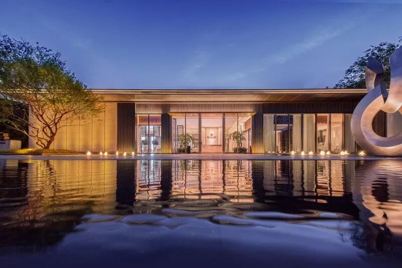 景观设计结合现代简约的建筑风格,借鉴古典造园方式,利用现代构成手法,通过对当地文化元素的提取、运用,空间光影变幻的营造,回旋式的动线设计,黑白灰的材料色彩搭配,打造一个返璞归真,极静雅致的人文府邸。